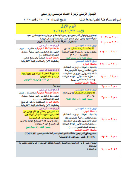 Academic schedule for Visit of the Institutional and Programs Accreditation Review Team